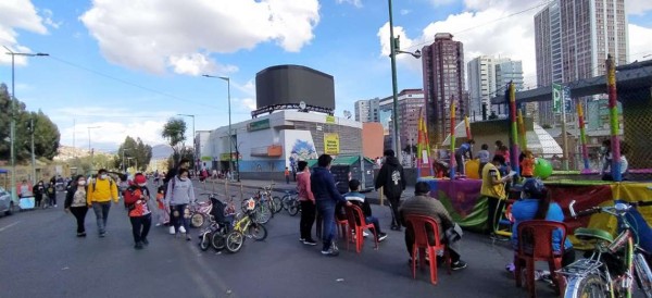 El Prado paceño, la Av. Camacho, el atrio del estadio Hernando Siles, la Plaza Villarroel, fueron algunos sectores donde se apostaron muchos jóvenes y niños para disfrutar un clima cálido sin vehículos del transporte público y privado.