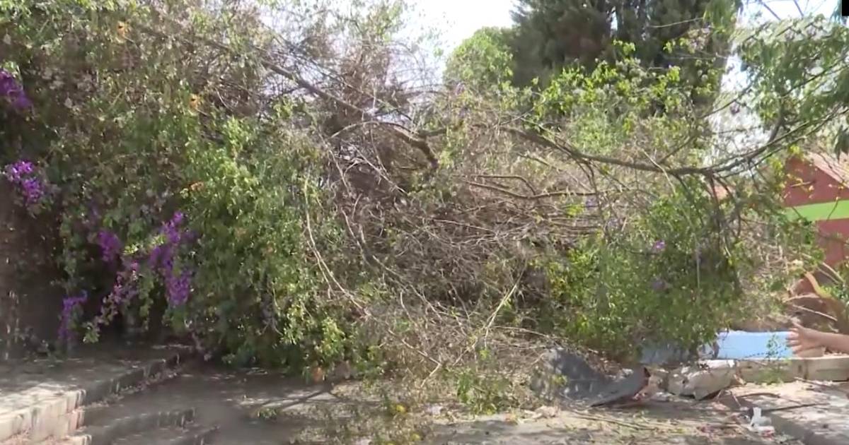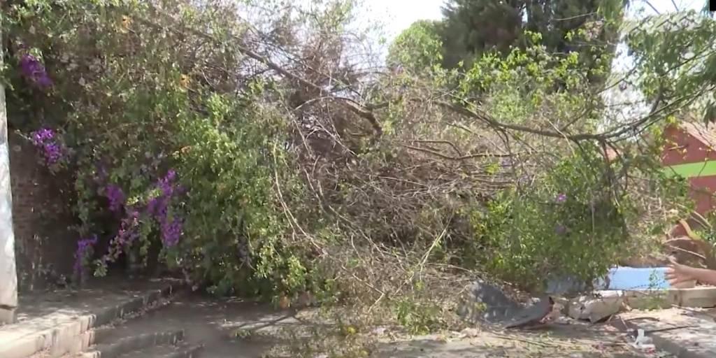 El muro de un colegio y un poste de energía eléctrica quedan afectados tras la caída de un árbol en Cochabamba