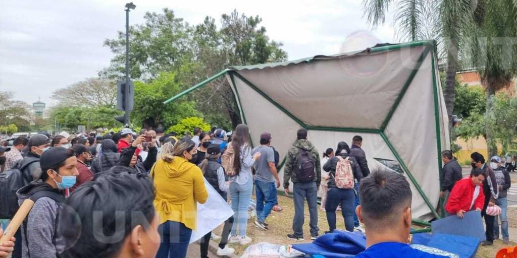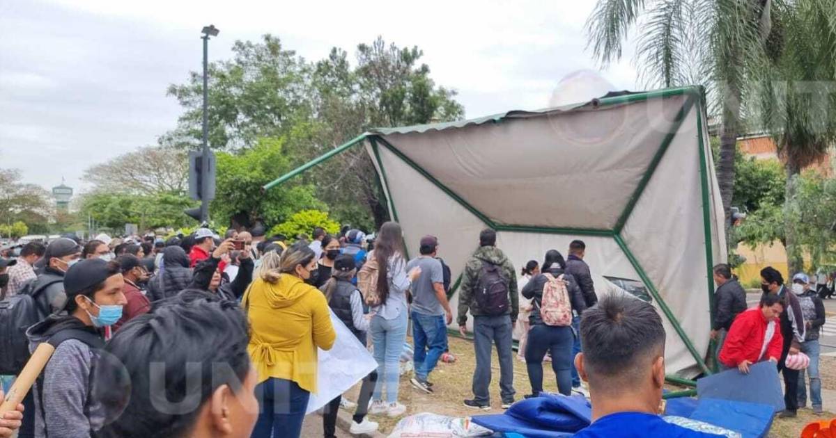 Un grupo de personas estaba en vigilia en el ingreso desde la anterior semana y otro grupo intentó retirarlos este lunes. Se registraron momentos de tensión