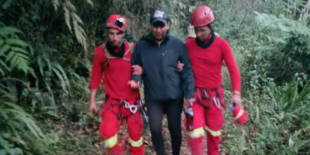 “¡Está vivo, está vivo!”. Jhonatan Díaz, el hombre de 31 años que estaba desaparecido desde hace ocho días en el Camino del Inca, en los Yungas de La Paz, fue encontrado con vida.