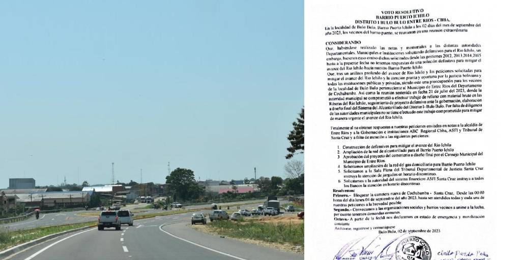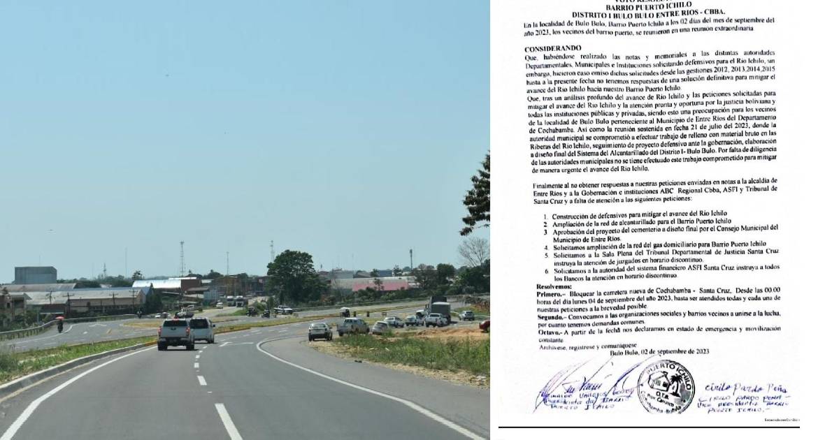 Un nuevo conflicto trae consigo un nuevo anuncio de bloqueo en la ruta troncal que conecta a Santa Cruz con Cochabamba y que se concretará desde las 00:00 de este lunes, según la resolución de los vecinos del barrio Puerto Ichilo, de la localidad de Bulo Bulo.