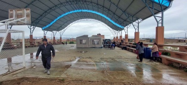 Los damnificados se encuentran durmiendo en carpas debido a que ya no pueden habitar sus hogar, por lo que fueron instalados en la cancha polifuncional de la zona.