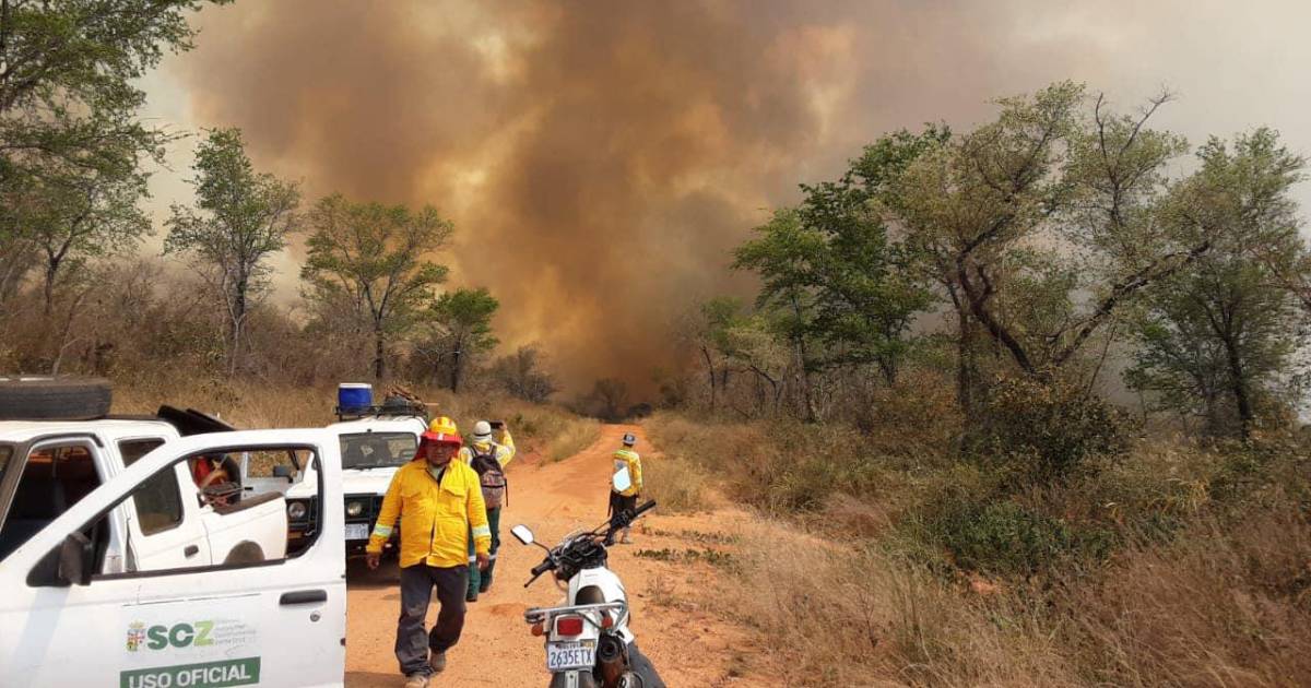 En este incendio están trabajando bomberos de la Gobernación de Santa Cruz. Además, de voluntarios de distintas instituciones y guardaparques de la Unidad de Conservación de Patrimonio Natural (UCPN), Tucabaca y de Ñembi Guasu.