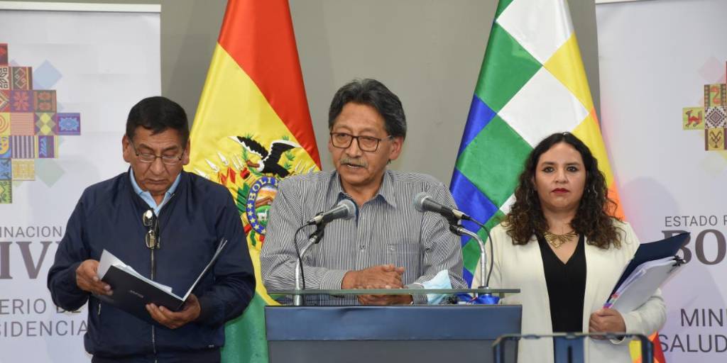 Tras la intervención a la minería ilegal en Riberalta, los ministros de Minería y Metalurgia, Marcelino Quispe; de Medio Ambiente, Rubén Méndez; y de Salud, María Reneé Castro, brindaron este lunes una conferencia conjunta para exponer la situación de la minería ilegal y el uso no controlado del mercurio.