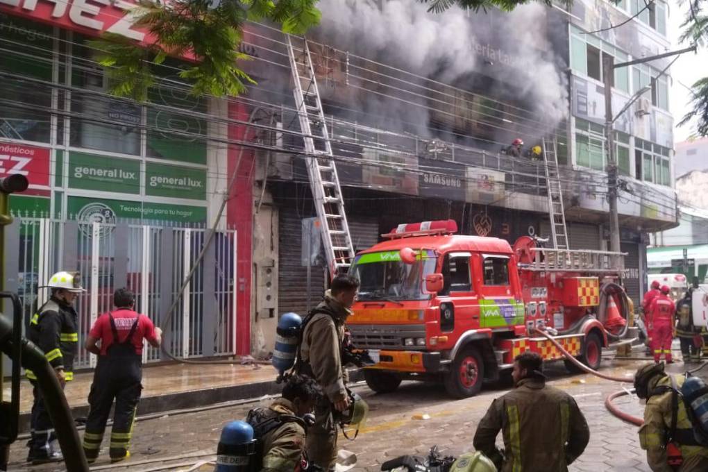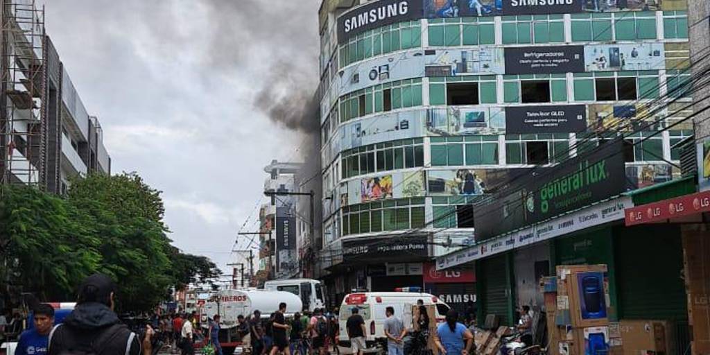 El fuego alcanzó una de las galerías de un centro comercial en donde, aparentemente, se comercializan electrodomésticos.