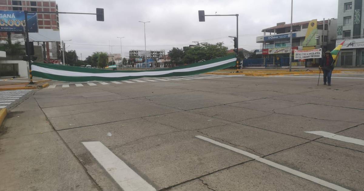La rotonda de la Madre India, en el segundo anillo de la capital cruceña, amaneció bloqueada por un grupo de vecinos que decidió manifestarse en rechazo a lo que consideran es un ‘paquetazo’ de leyes contra la población.