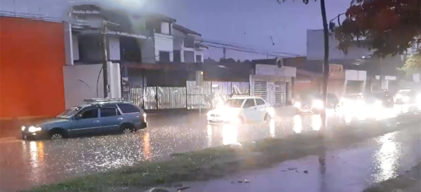 En horas de la noche se iniciaron los chubascos y horas después cayó una fuerte precipitación provocando que varias calles y avenidas queden totalmente inundadas.