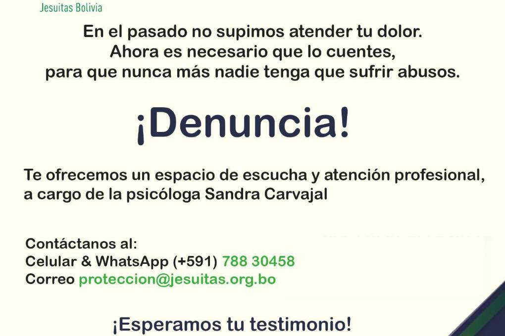 El celular +591 78830458 y el correo protección@jesuitas.org.bo son los medios por donde el ente religioso recogerá los testimonios.