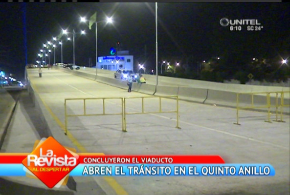 Ayer por la noche, el alcalde Percy Fernández, acompañado de funcionarios municipales inauguraron el viaducto del Quinto Anillo y Av.Banzer. La obra de 340 metros de longitud y una capacidad de 400 vehículos por hora, fue inaugurada en medio de música y fuegos artificiales.