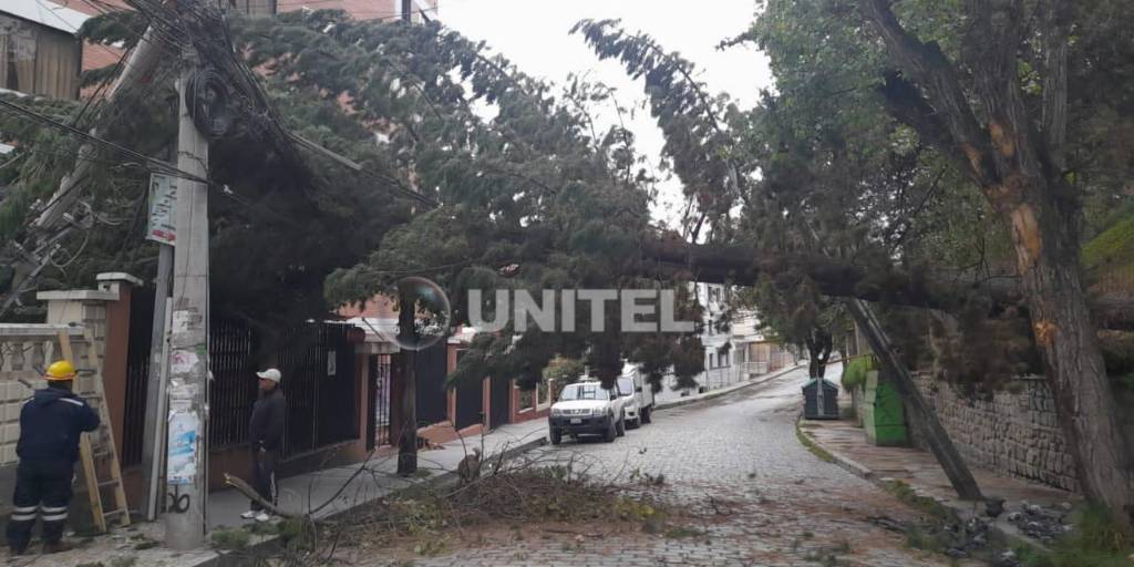 La madrugada de este lunes un árbol cayó sobre el tendido eléctrico en la calle Presbítero Medina y Pedro Salazar y dejó sin energía eléctrica a una parte del barrio Sopocachi de La Paz.