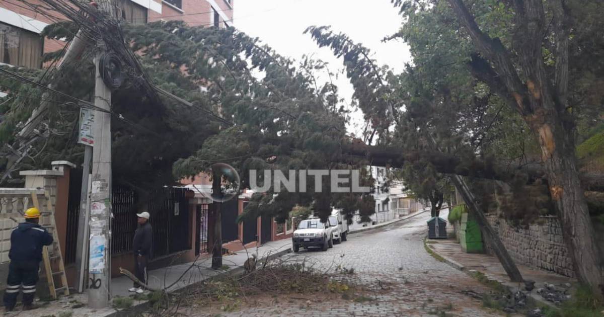La Paz: árbol cae en Sopocachi y daña cableado y postes de energía eléctrica