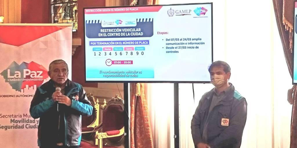 Desde este 27 de marzo en La Paz regirá una nueva restricción vehicular para ingresar al centro paceño. La Alcaldía paceña asegura que ya realizó la socialización; sin embargo, este proceso continúa con distintas asociaciones.