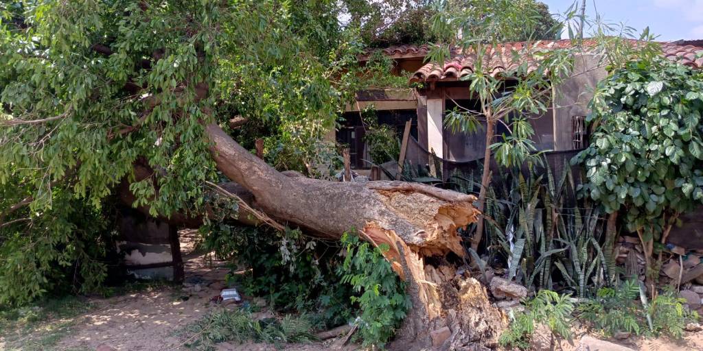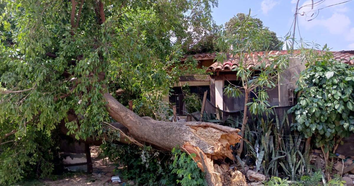 La intensidad de las ráfagas del viento ya ocasionaron emergencias en Santa Cruz de la Sierra. Una de ellas, un árbol cayó en parte de una vivienda en el barrio El Carmen, Los Lotes.