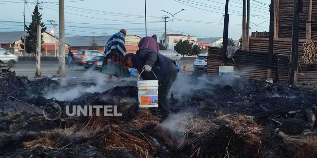 Aún hay temor de que el fuego se reactive. Los afectados del incendio de los negocios de madera de la ciudad de El Alto han instalado una vigilia con baldes llenos de agua para aplacar los focos de calor que han quedado del siniestro del fin de semana.