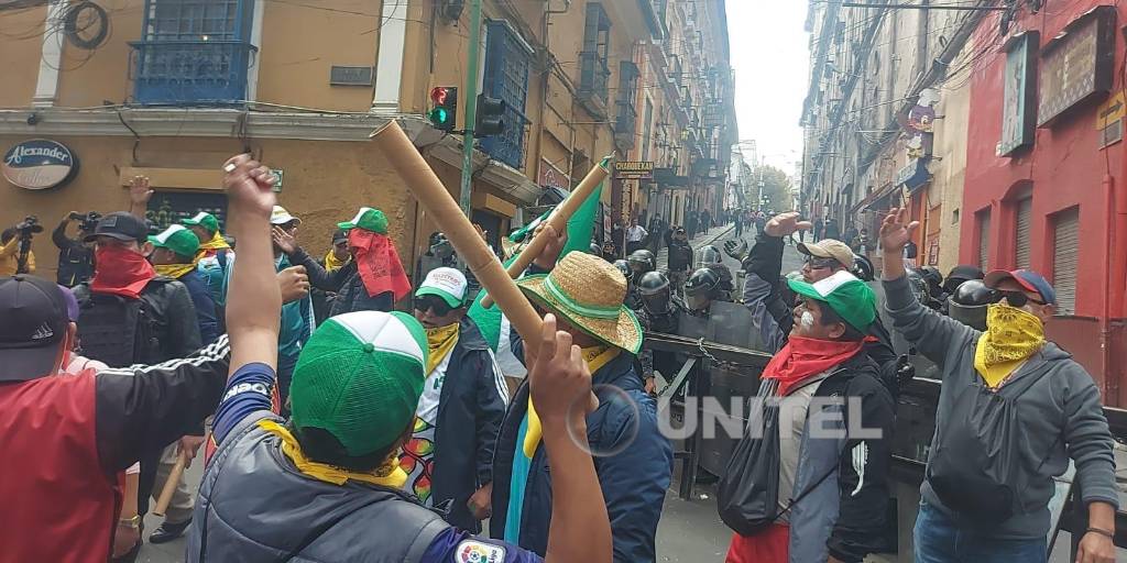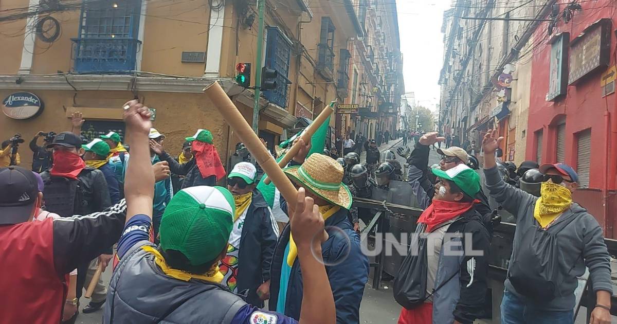 En ese ínterin se desató un enfrentamiento en la intersección de las calles Potosí y Yanacocha entre los movilizados y la Policía, que respondió con gases lacrimógenos e incluso con balines “paintball”. Otra refriega se produjo en la calle Ayacucho, a pocos metros de la Casa Grande del Pueblo.