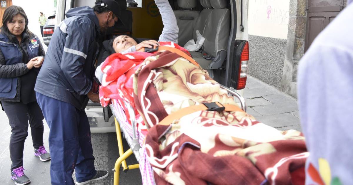 [Foto: APG] / La profesora Celia Suárez (proveniente de Uncía, Potosí), es trasladada a un centro de salud