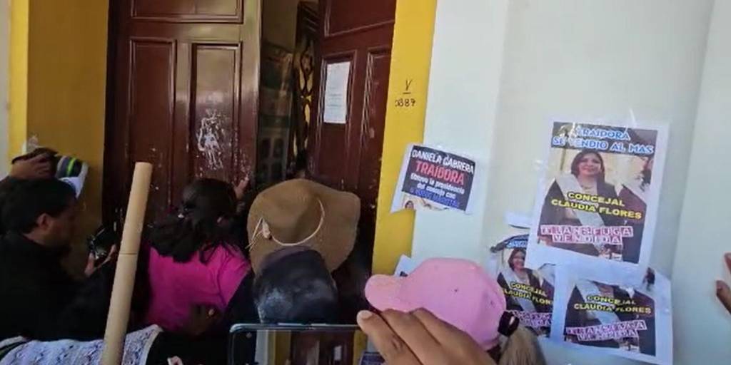 Manifestantes ingresan a la fuerza al Concejo Municipal de Cochabamba; exigen renuncia de dos concejalas