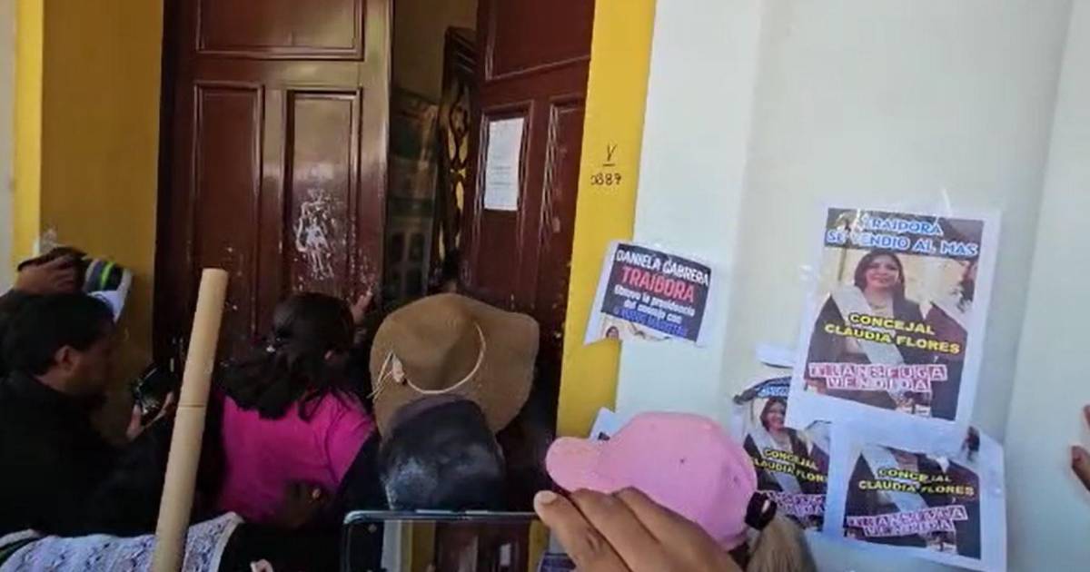 El grupo de personas cuestiona la elección de las concejales de Súmate, Daniela Cabrera y Claudia Flores, en la directiva del Concejo con votos del MAS