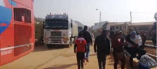 Los transportistas afectados por el bloqueo rechazaron la continuidad de la protesta y en respuesta colocaron sus vehículos obstruyendo también el ingreso hacia el pueblo de Pampagrande.