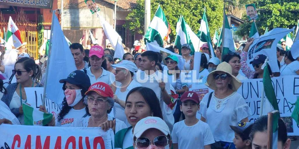 La marcha prevé realizar un mitin e instalar un libro para juntar firmas exigiendo la liberación del gobernador Luis Fernando Camacho