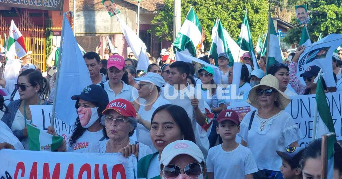 Marcha convocada por mujeres recorre calles de Montero en apoyo a Camacho