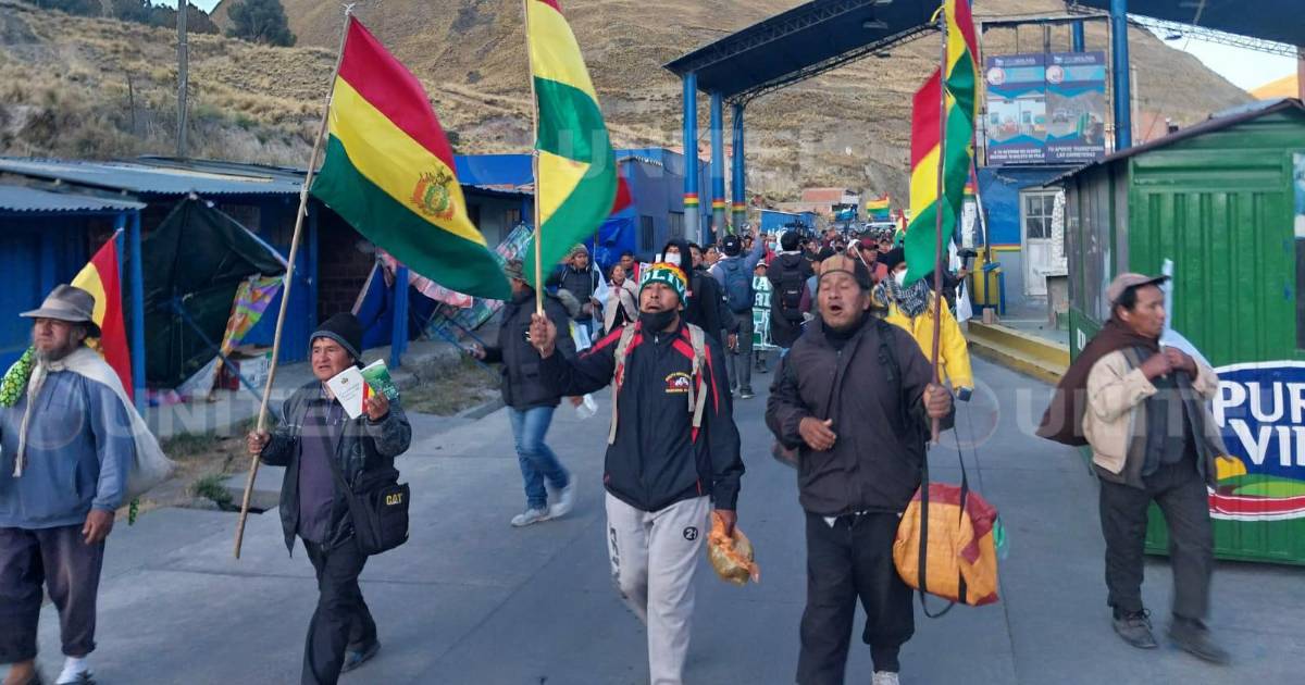 Varios marchistas con banderas blancas y de la tricolor llegaron a esta zona tras cuatro días de movilización desde la región yungueña de Chulumani.