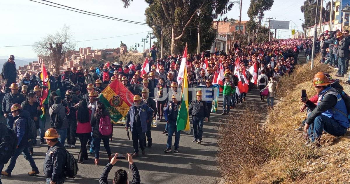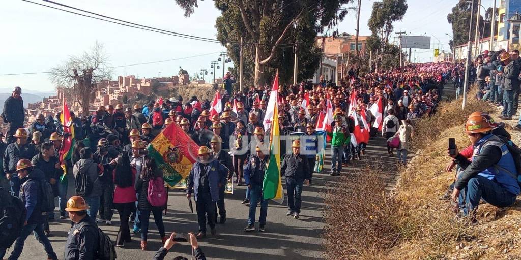 Trabajadores de la Federación Nacional de Cooperativas Mineras partieron en marcha este lunes alrededor de las 7:00 desde el multifuncional de La Ceja de El Alto rumbo a la ciudad de La Paz.