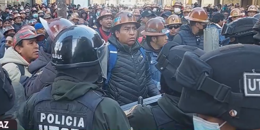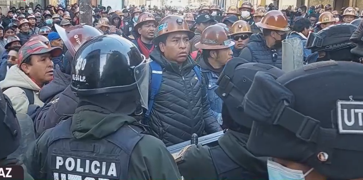 [Foto: UNITEL] / Mineros llegaron a la Sede de Gobierno
