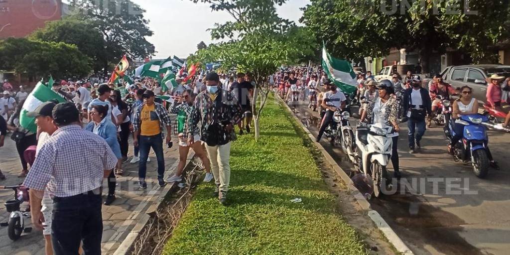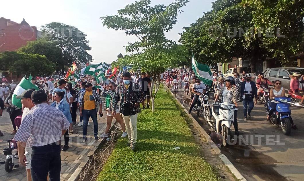 Esta marcha, compuesta por universitarios, comité cívico, control social, además de representantes de grupos de vecinos, inició en la rotonda norte y pasó por el centro del municipio, para finalizar en la rotonda sur.