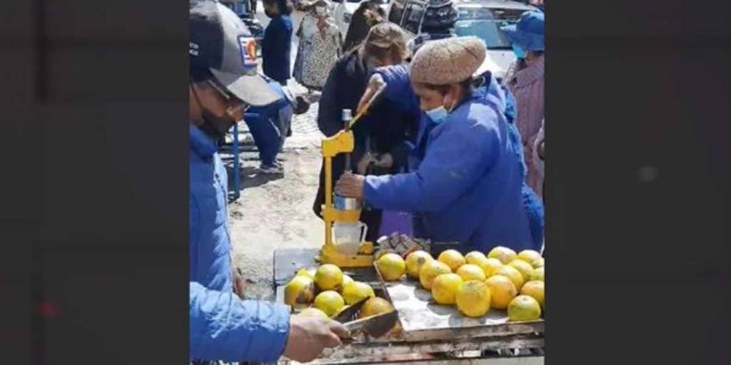 El video de la pareja vendiendo este producto se hizo viral en pocas horas. El hombre, con la hornilla encendida, calienta las naranjas y se las pasa a su pareja para que termine de exprimir y preparar el jugo, que es apetecido por varios clientes.
