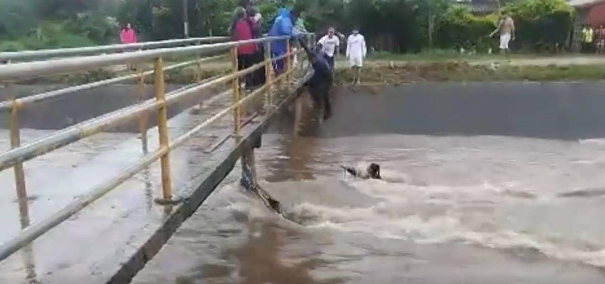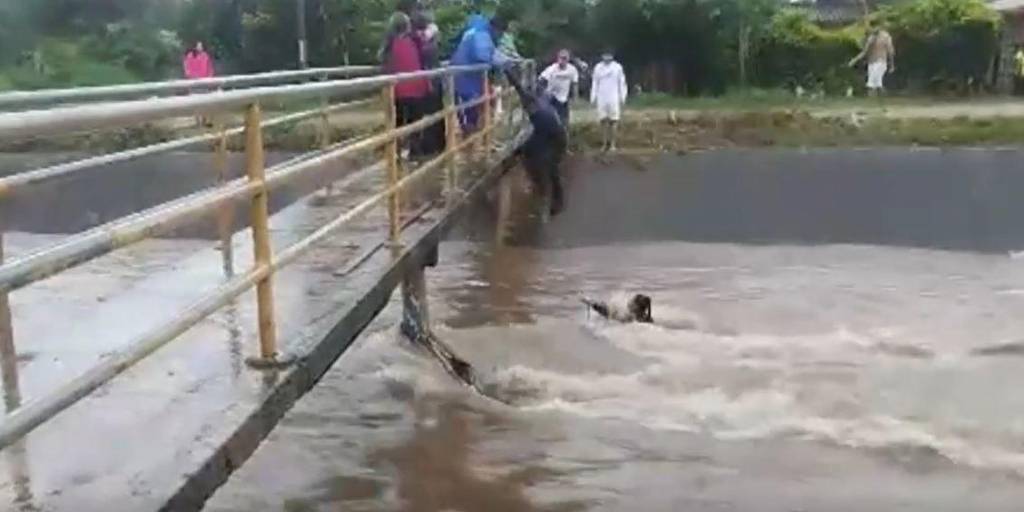 En medio del caos logró agarrar al animalito, pero el agua los seguía arrastrando. Los vecinos corrieron hasta un puente peatonal, que cruza sobre el canal. Le lanzaron sogas, pero ella no pudo aferrarse.
