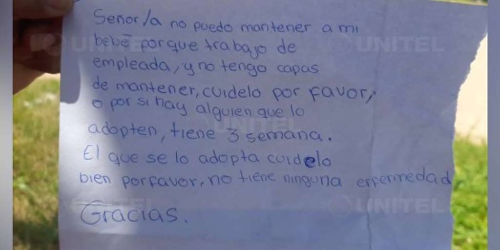 “Señor/a no puedo mantener a mi bebé porque trabajo de empleada y no tengo capacidad de mantenerlo”, señalan las primeras líneas de la carta manuscrita que fue encontrada en el mismo cajón donde fue abandonado el niño.