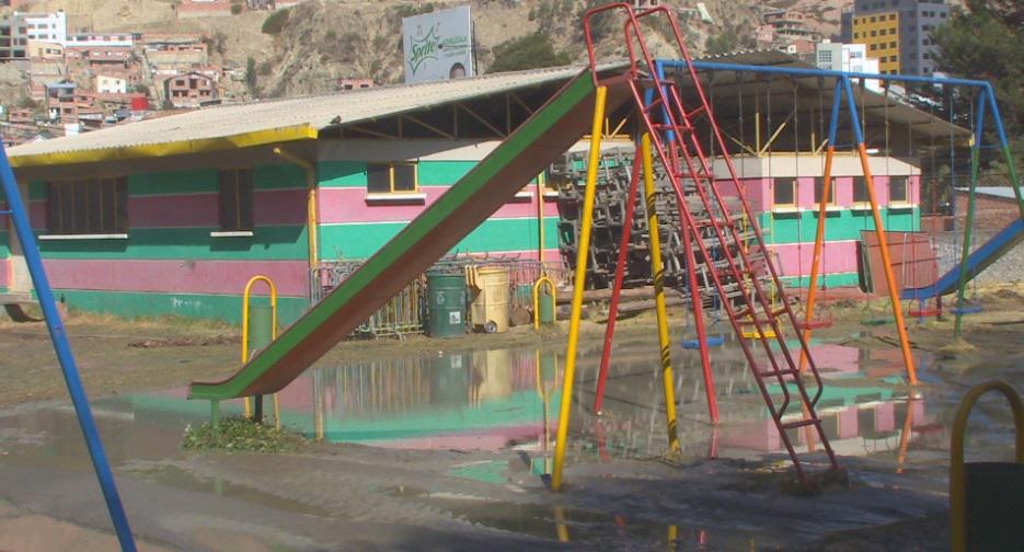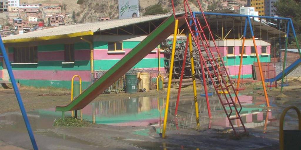 A consecuencia de la rotura de una cañería de agua potable, el Parque de las Cholas de la Florida de La Paz, terminó con canchas de arena inundadas, juegos infantiles clausurados y arboles afectados tras el arrastre de tierra que llegó hasta varios ambientes del espacio familiar.