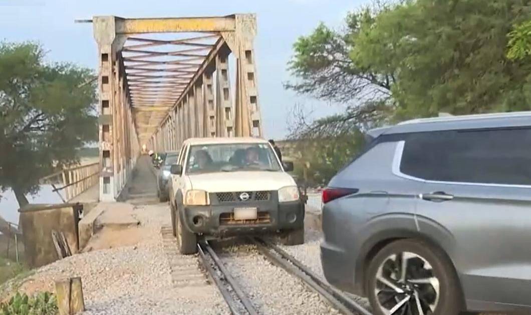 Personas a bordo de sus vehículos evadieron un punto de bloqueo pasando por el antiguo puente, vía que es usada por el tren
