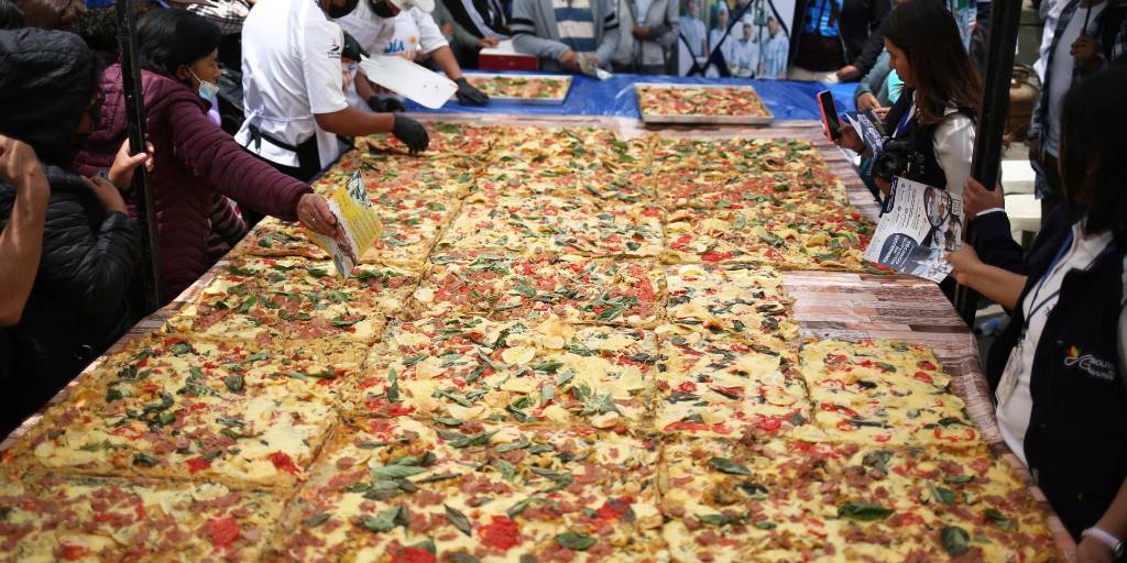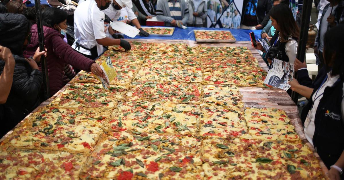 Por tres horas prepararon la pizza de unas 2.000 porciones en una plaza en el centro de La Paz.