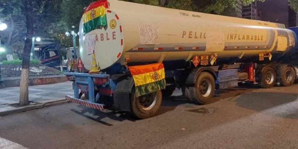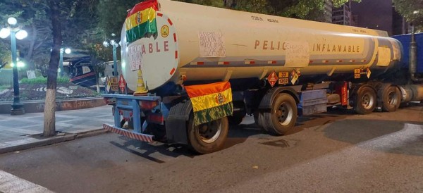 Propietarios de cisternas que transportan combustible utilizaron sus vehículos de alto tonelaje e iniciaron un bloqueo en el prado paceño y algunos accesos al centro de la ciudad de La Paz.