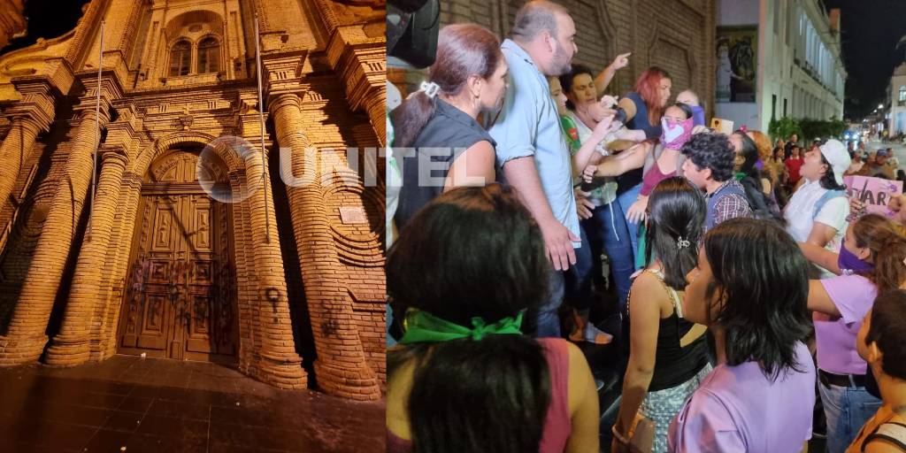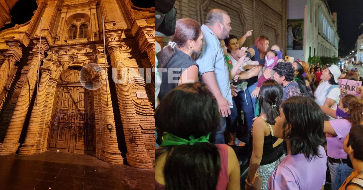 Este jueves se realizó una manifestación en conmemoración por el Día Internacional de la Mujer. Pasadas las 20:00 se registró el ataque a la Catedral cruceña
