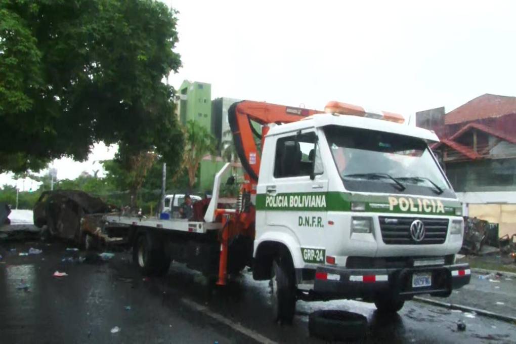 [Foto: UNITEL] / Vehículos quemados en la zona del Cristo