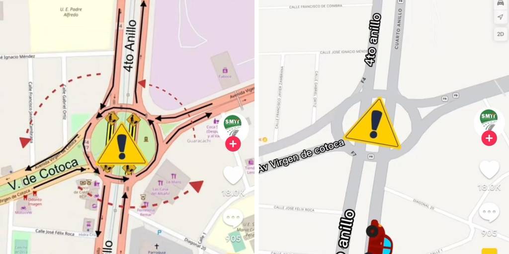A un día del inicio del cierre de la zona, la Alcaldía de Santa Cruz de la Sierra socializó el plan de desvío. Los vehículos que vienen de la avenida Virgen de Cotoca deberán desviar al cuarto anillo por un costado de la rotonda. Los que vienen del cuarto anillo deberán llegar hasta la rotonda y luego desviar hacia la Virgen de Cotoca. Similar lógica deberán de aplicar los otros dos sentidos de circulación que llegan a la rotonda.
