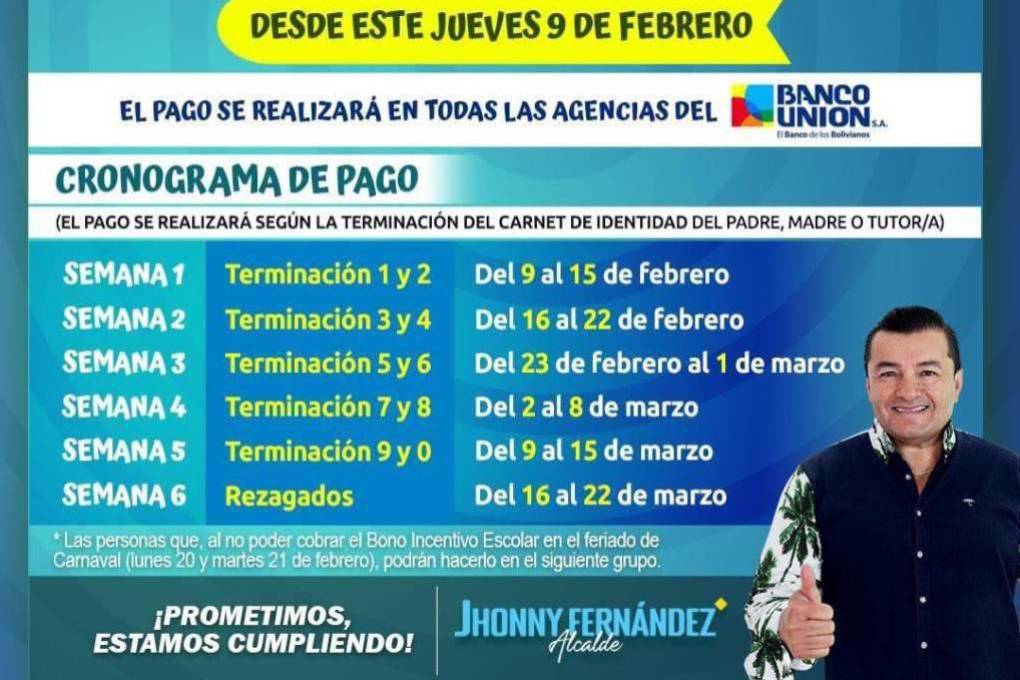 Existe un cronograma de pago hasta el 16 de marzo, distribuido por días, según la cédula de identidad. El proceso se extenderá hasta el 22 de marzo. La última semana es para rezagados.