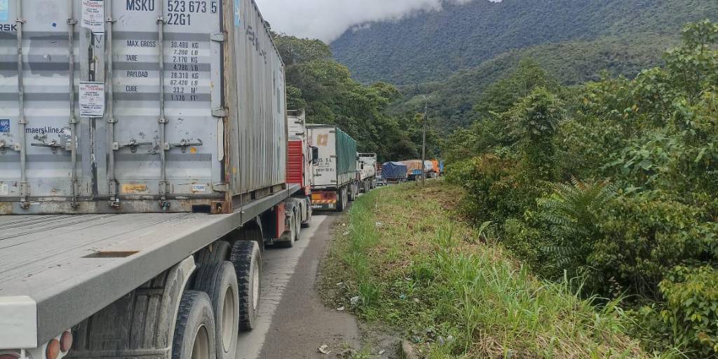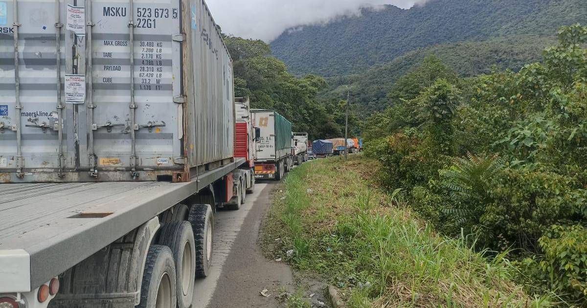 Producto de este bloqueo se ha registrado largas filas de vehículos a lo largo de la carretera entre camiones, buses, vehículos livianos y particulares.