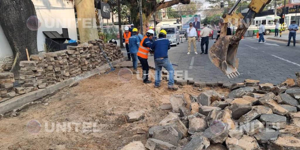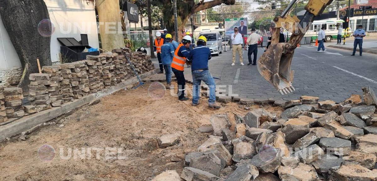 Las primeras losetas retiradas fueron las de la calle René Moreno y está previsto que mañana se realice el mismo trabajo en la calle Bolívar.