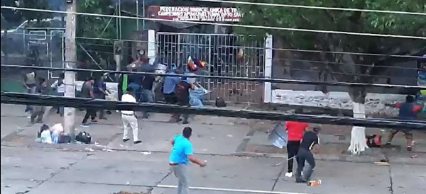 Cerca de las 16:00 de este miércoles se iniciaron los enfrentamientos con cohetes y palos. Un grupo se encuentra haciendo vigilia en la sede de los campesinos