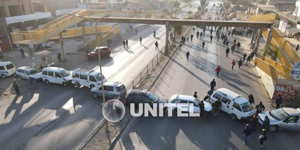 [Foto: Rodirgo Uscamaita - UNITEL] / La avenida Blanco Galindo se encuentra bloqueada