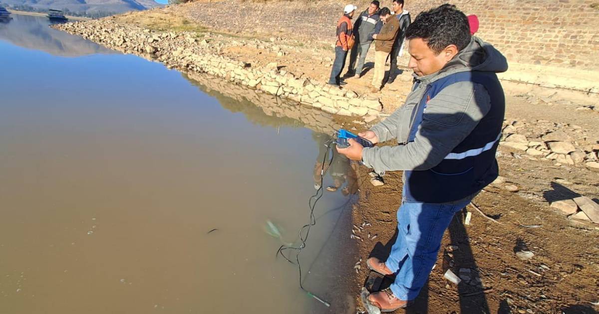 Expertos de la Gobernación de Cochabamba se trasladaron hasta el lugar para hacer la toma de muestras. Se descartó que el bajo nivel de agua sea una de las causas de mortandad