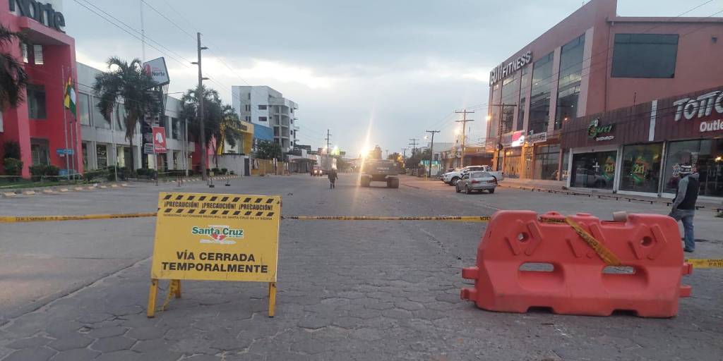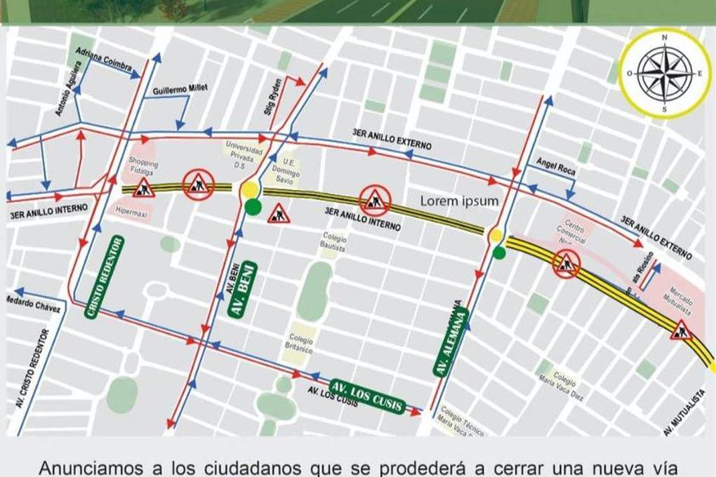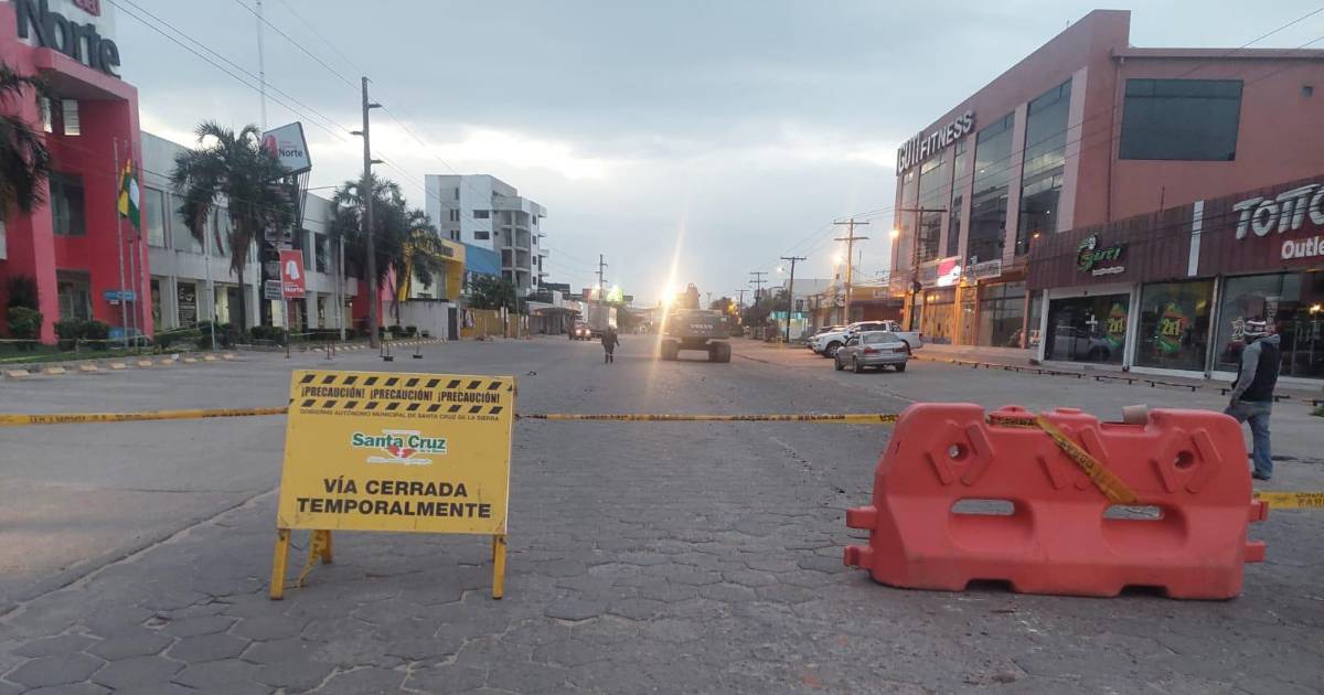 Personal de la Secretaría Municipal de Obras Públicas de Santa Cruz procedió con el cierre de la vía que une las avenidas Alemania y Mutualista, en inmediaciones del tercer anillo interno, zona norte de la capital cruceña, para iniciar con obras.