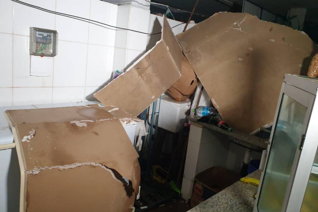 Dos puestos fueron los más afectados ya que recibieron toda la caída del material de yeso que era parte del techo provocando daños en sus artefactos electrónicos, utensilios y demás productos que utilizan los comerciantes.