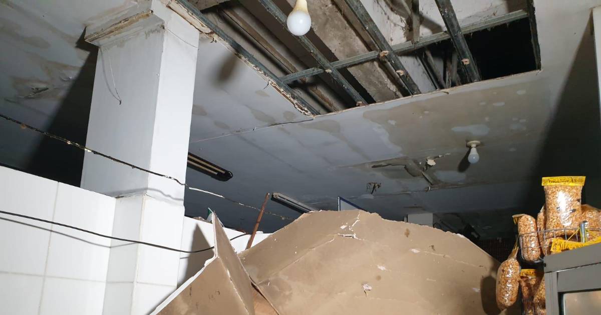 Asimismo, se pudo evidenciar cómo tras el colapso del cielo falso, el agua empezó a acumularse al interior de este centro de abastecimiento.