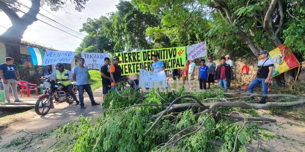 Los comunarios de Quebrada Seca, que impulsan esta protesta, en La Guardia insisten que ya no permitirán que el vertedero siga en el lugar.