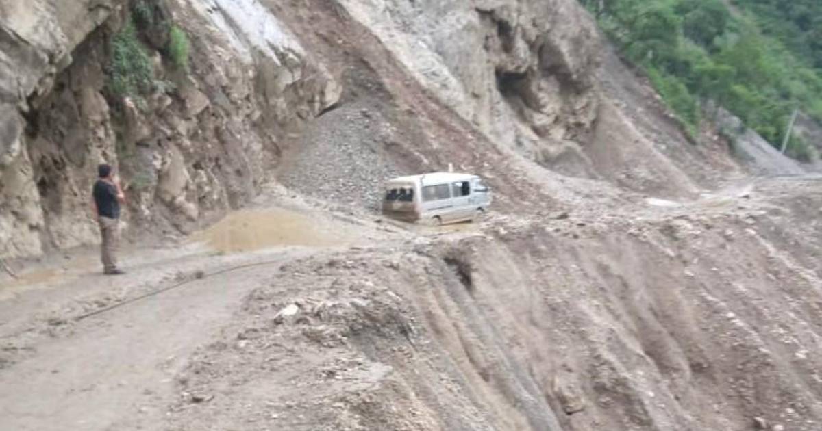 La mañana de este miércoles un derrumbe sepultó un minibús que circulaba por el sector de Santa Rosa. La caída de materia también afecta al camino a Las Mercedes en el sector de Cruces.